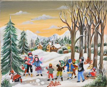Tableau "Bataille de boules de neige" toile de format 3F