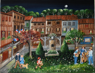 Tableau "Mirepoix la nuit" toile de format 5F