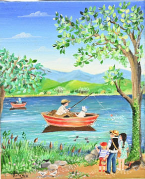 Tableau "Pécheur du lac" toile de format 3F