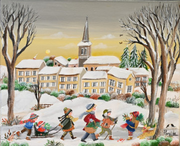 Tableau "Promenade d'hiver avec les enfants" toile de format 3F